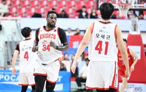 [천지일보=강태산 기자] 프로농구 서울 SK가 돌아온 ‘잠실의 왕’ 자밀 워니의 ‘더블더블’ 활약에 힘입어 부산 KCC를 3연패에 빠트렸다. SK는 4일 서울 송파구 잠실학생체육관에서 열린 2025-2026 LG전자 프로농구 정규리그 홈 경기에서 KCC를 76-68로 꺾었다.SK는 5승 7패를 쌓아 울산 현대모비스와 공동 7위로 올라섰다. KCC는 6승 5패로 5위에서 제자리걸음 했다.양 팀은 경기 초반부터 외곽에서 활로를 찾으며 빠른 공격으로 점수를 쌓았다.1쿼터 SK 오재현이 3점슛 3방으로 공격을 이끌자, KCC 송교창도 3점