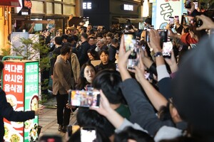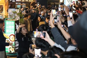[천지일보=김정필 기자] 젠슨 황 엔비디아 최고경영자(CEO)가 30일 이재용 삼성전자 회장, 정의선 현대차그룹 회장과의 치킨 회동을 위해 서울 삼성동의 한 치킨 집으로 향하고 있다.