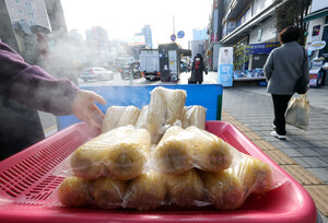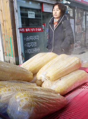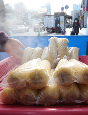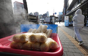 [천지일보=남승우 기자] 쌀쌀한 날씨가 이어지고 있는 26일 서울 시내의 한 거리 노점에 김이 모락모락 올라오는 따뜻한 옥수수가 사람들의 손길을 기다리고 있다.