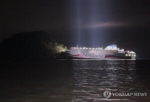 [천지일보=정다준 기자] 전남 신안군 장산면 족도(무인도)에 좌초했던 2만 6000t급 대형 카페리 여객선 ‘퀸제누비아2호’가 사고 발생 약 9시간여 만에 목포항으로 무사히 입항했다. 목포해경은 선내 기록과 영상을 확보해 정확한 사고 경위를 조사하고 있다.20일 목포해경 등에 따르면 전날 오후 8시 16분께 제주를 출발해 승객 246명과 승무원 21명 등 267명이 탑승한 퀸제누비아2호가 장산도 남방 족도에 좌초했다. 섬 가장자리 위로 선체 일부가 올라탄 형태였으나 파공이나 누수는 발생하지 않아 예인 작업 후 자력 이동이 가능했다.
