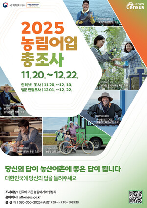 [천지일보 경북=장덕수 기자] 안동시가 20일부터 오는 12월 22일까지 전국적으로 시행되는 2025 농림어업총조사를 실시한다.이번 조사는 국가데이터처(전 통계청)가 주관하고 지자체가 수행하는 5년마다 실시되는 전수조사로 농업임업·어업 분야의 전반적인 실태를 파악해 향후 국가 및 지방의 농정 정책 수립에 중요한 기초자료로 사용된다. 조사 대상은 2025년 12월 1일 기준 농림어업을 영위하는 모든 가구다.20일부터 우선 실시되는 비대면 조사는 우편으로 받은 참여번호로 직접 농림어업총조사 누리집에서 참여하거나 콜센터를 통해 전화로 참