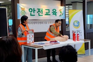 [천지일보 강원=이현복 기자] ㈔세계여성평화그룹(IWPG) 동해·삼척지부가 27일 지부 사무실에서 돌담마을협동조합 주관으로 강원도 안전문화센터 전문가와 함께 CPR(심폐소생술) 안전교육을 진행했다.이어 IWPG 동해·삼척지부 주관으로 ‘피스북(Peace Book) 카페’도 열어 평화의 의미를 나누는 시간을 가졌다.이번 안전교육은 생명을 지키는 방법을 배우며 ‘한 생명을 살리는 일이 곧 평화를 실천하는 일’이라는 메시지를 함께 나누는 자리였다. 참여자들은 강사의 시범과 직접 실습을 통해 응급상황 대처법을 익히며, 안전의 중요성과 서로