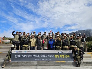 [천지일보 제주=노희주 기자] 제주특별자치도 세계유산본부와 국립공원공단이 지난 24일부터 26일까지 한라산국립공원에서 불법 탐방 행위를 집중 단속하고 건전한 탐방문화 정착을 위한 합동 캠페인을 진행했다. 이번 단속은 ‘지속 가능한 공원 이용’을 목표로 한 협력형 환경보전 활동의 일환이다.도와 공단은 한라산 내 비법정탐방로 출입 행위, 쓰레기 투기, 지정구역 위반 등 주요 불법행위를 대상으로 합동단속을 실시했다. 그 결과 비법정탐방로로 무단 진입한 탐방객 5명이 적발됐으며 ‘자연공원법’ 제28조에 따라 개인별 20만원씩 총 100만원