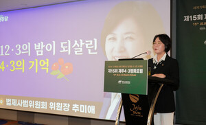 [천지일보 제주=노희주 기자] 제주4.3 기록물의 세계기록유산 등재 이후 처음으로 열린 국제 학술포럼이 지난 13일부터 14일까지 제주썬호텔에서 진행됐다. 이번 포럼은 제주4.3평화재단이 주최하며 4.3의 세계화와 기록물 보존 전략을 점검하는 자리로 마련됐다.지난 13일 기조강연에서는 추미애 국회 법제사법위원장이 ‘제주4.3 진실규명의 의미’를 주제로 발표했다. 추미애 위원장은 “제주4.3 해결의 가장 큰 걸림돌은 오랜 세월 이어진 색깔론이었다”며 “4.3에 씌워진 낙인 프레임을 연대의 힘으로 극복했다”고 강조했다. 이어 “제주4.