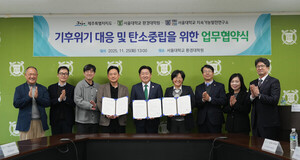 [천지일보 제주=노희주 기자] 제주특별자치도가 서울대학교와 손잡고 기후위기 대응과 탄소중립 전환을 위한 공동 정책 개발과 기후테크 산업 육성에 나선다. 제주도가 축적한 기후위기 정책 경험과 서울대의 융합 연구 역량을 결합해 실효성 높은 탄소중립 모델을 구축한다는 점에서 전국적 파급력이 예상된다.제주도는 25일 서울대학교에서 서울대 환경대학원·지속가능발전연구소와 ‘기후위기 대응 및 탄소중립 지속가능 정책 연구·자문 협약’을 체결했다. 이번 협약은 제주도의 현장 정책 데이터를 기반으로 기후·환경 연구를 연계해 새로운 기후테크 산업 생태