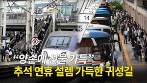[천지일보·천지TV=김미라 기자] 추석 연휴 둘째 날. 서울역은 오고 가는 귀성객들로 북적북적합니다.커다란 여행 가방을 챙겨 온 가족 단위부터 선물 꾸러미를 든 학생들까지 발걸음이 끊이지 않는데요.전광판에 뜨는 열차 시간표를 빠르게 확인하며 설렘이 가득한 모습입니다.긴 연휴만큼이나 고향을 그리는 발걸음도 빨라집니다.그리운 고향집에 얼른 닿기를, 조금이라도 빨리 부모님 얼굴을 뵙고 싶습니다.(인터뷰: 박성혁 | 귀성객)“일 때문에 밑에 있다가 올라온 거라서. 추석 당일은 집에 있고 그 뒤에 제주도 갔다 올 것 같아요. 가족들 다 건강