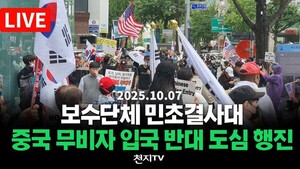 [천지일보·천지TV=김영철 기자] 보수단체 민초결사대가 추석 연휴인 오늘(7일), 서울 안국역 일대에서 중국인 무비자 입국에 반대하는 도심 행진을 진행합니다.정부가 지난달 29일부터 한시적으로 3인 이상 중국인 단체 관광객의 무비자 입국을 허용하면서 반중 여론이 거세지고 있는데요.이에 따라 곳곳에서 반대 집회와 행진이 잇따르고 있습니다.(촬영: 김인우 기자)