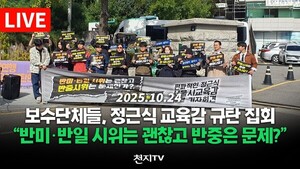 [천지일보·천지TV=김영철 기자] 청년 보수단체 자유대학을 비롯한 보수 단체들이 오늘(24일) 서울시교육청 앞에서 정근식 교육감을 규탄하는 집회를 열었습니다.정 교육감이 최근 활발히 이어지고 있는 청년들의 반중 시위를 두고 “특정 집단을 혐오하고 차별하며 분열을 조장하는 시위”라고 규정한 데 대한 반발인데요.참석자들은 “반미·반일 시위는 괜찮고, 반중 시위만 문제 삼느냐”며 정 교육감의 발언을 강하게 비판했습니다.(촬영: 김인우 기자)