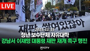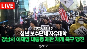 [천지일보·천지TV=김영철 기자] 청년 보수단체 ‘자유대학’이 오늘(15일) 서울 강남 일대에서 이재명 대통령의 재판 재개를 촉구하는 행진 집회를 엽니다.자유대학 측은 “대장동 관련자 5인에게 모두 실형이 선고되었지만, 검찰은 항소를 포기하며 이재명 재판을 지연시키려 하고 있다”며 국민의 뜻을 모으기 위해 집회를 진행하게 됐다고 밝혔습니다.(촬영: 김영철 기자)