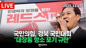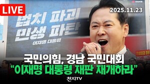 [천지일보·천지TV=김인우 기자] 국민의힘이 오늘(23일) 경남 창원에서 ‘민생회복‧법치수호 국민대회’를 진행합니다.국민의힘은 검찰의 대장동 항소 포기 사건 국정조사와 이재명 대통령의 재판 재개 등을 요구할 것으로 보입니다.(화면출처: 국민의힘tv)