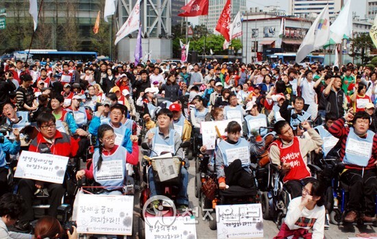 이날 전국에서 모인 장애인 400여 명은 이런 취지로 ‘장애인의 날’을 ‘장애인차별철폐의날’로 바꿔야 한다고 주장했다.