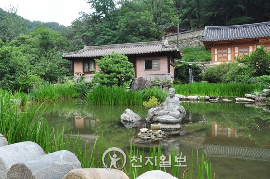 대웅전과 석탑을 지나 짧은 계단을 오르면 석굴암과 산령각이 보인다. 높이 오르니 사찰 경내가 내려다보이고 물소리도 한층 또렷하게 들린다. 사찰 바로 옆으로 계곡물이 흐르고 있기 때문이다.