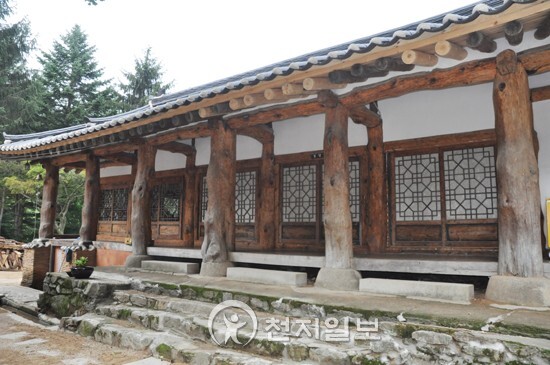 무영루를 통과하면 바로 옆으로 늘씬하고 키가 큰 나무 여러 그루가 줄지어 있어 산책로 같은 분위기를 자아낸다. 또 ‘관음전’은 나무를 크게 다듬지 않고 자연 그대로의 모습을 최대한 살려 기둥으로 세웠다. 단청도 하지 않았다.