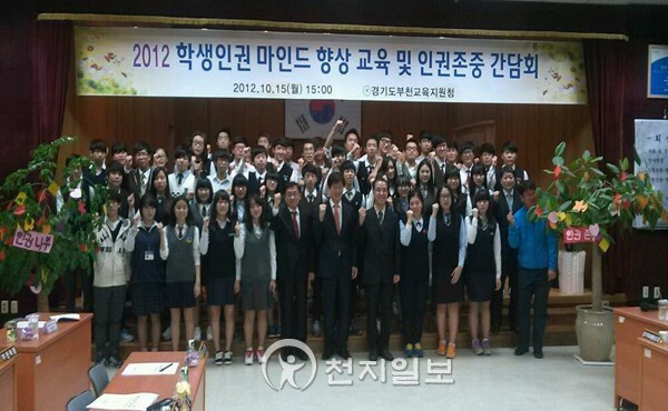 [천지일보=김현진 기자] 경기도 부천교육지원청이 15일 학생인권조례 공포 및 학생인권 혁신의 날 2주년을 기념해 ‘학생인권 마인드향상 및 인권존중 간담회’를 가졌다.