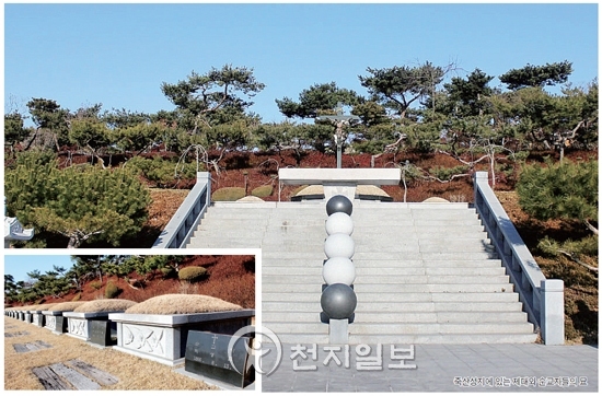 성지 안으로 들어서자 금빛 잔디가 방문객을 반겼다. 초겨울의 잔디는 쓸쓸함보다는 따뜻하고 포근한 느낌이 들었다. 일주문으로부터 정면에 있는 순교자들의 묘와 제대로 올라가는 계단까지 길이 이어져 있었다. 무명의 순교자 묘를 중심으로 ‘병인박해 치명일기’ ‘증언록’에 기록돼 있는 25명의 순교자 묘가 양쪽에 나란히 배치돼있다. 이 묘들의 주인은 김도민고, 여기중, 이희서, 홍천여, 한치수, 문막달레나, 정덕구, 방데레사 등이다.