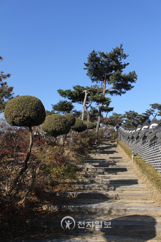 묘 위쪽으로 발걸음을 옮기자 나무로 된 계단이 옆에 나무와 어우러져 있는 ‘십자가의 길’로 이어진 계단이 나온다. 이 길에 가운데는 순교자들의 영을 달래듯이 팔을 벌리고 있는 예수상이 나온다. ‘십자가의 길’을 걸으며 예수와 이름 없이 사라진 순교자들을 조용히 묵상해본다.