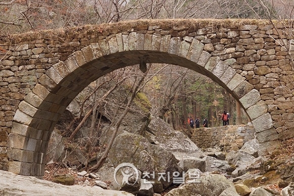 매표소부터 10분쯤 걸었을까. 무지개 모양의 아치형 다리가 눈길을 끈다. 이 다리는 우리나라 무지개다리(홍예교) 중 가장 자연스럽고 우아하다고 알려진 ‘승선교(昇仙橋, 보물 제400호)’다.