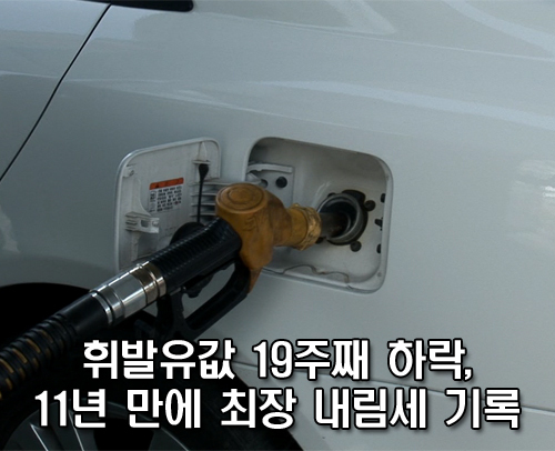 [천지일보․천지TV=황금중 기자․조현지 기자] 기름값이 19주 연속 하락하면서 11년 만에 최장기간 내림세를 기록했습니다.