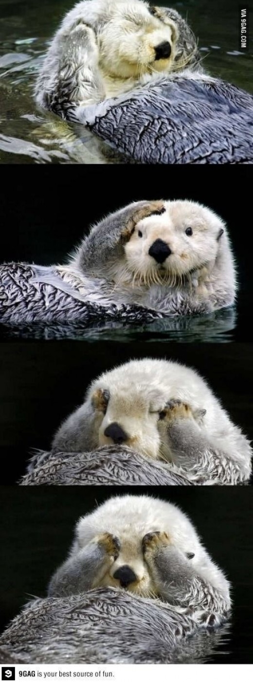 공개된 사진에는 물 위에 드러누워 있는 해달의 모습이 담겨 있다. 특히 해달은 물 위에서 얼굴을 잔뜩 찌푸린 채 손으로 얼굴을 감싸면서 일어났다.