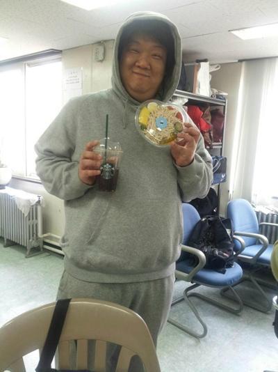 개그우먼 김영희는 지난 8일 자신의 트위터에 “유민상 선배 등장에 빵 터졌다. 스타벅스 벤티 사이즈는 스몰 같았고 다이어트 하신다고 사온 닭 가슴살 샐러드에는 닭 가슴살이 너무 많이 들어있다”는 글과 함께 사진 한 장을 게재했다.