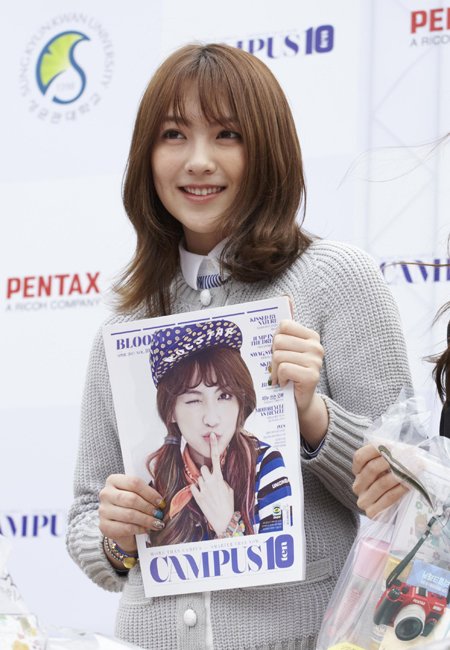 오후 1시부터 시작되는 행사였지만, 이미 한 시간여 전부터 성균관대 금잔디 광장은 강지영이 직접 나눠주는 어택패키지와 그녀가 직접 표지모델을 진행한 ‘캠퍼스텐’ 4월호를 받기 위해 길게 늘어선 줄로 가득 채워져 인기를 실감케 했다.