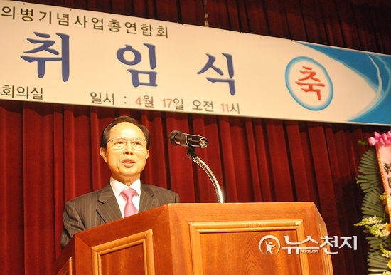[천지일보=김예슬 기자] 김한수 사단법인 의병기념사업총연합회 신임회장이 17일 서울 용산구 백범기념관 대회의실에서 열린 취임식에서 취임사를 하고 있다.