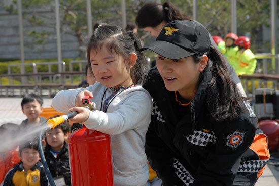 이날 어린이집 원생과 교사들은 생활 속에서 반드시 알고 있어야 할 기본적인 안전 상식을 배운 후 이동안전체험캠프 내에 준비된 7가지 빛깔의 소방안전체험과 물소화기를 이용한 가상화재 불 끄기 등을 몸소 익혔다.