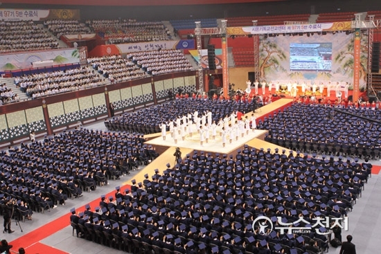 [천지일보=이솜 기자] 신천지예수교 증거장막성전(신천지) 다대오지파가 28일 경북 경산시 경산실내체육관에서 수료식을 거행하고 1100여 명의 수료생을 배출했다.