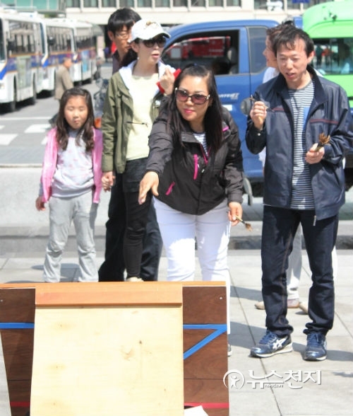 [천지일보=이솜 기자] 신천지예수교 증거장막성전(신천지) 서울야고보지파 성북교회가 1일 근로자의 날을 기념해 ‘국제 근로자 페스티벌’을 서울 광화문 광장에서 개최한 가운데 참여마당 중 투호놀이를 시민들이 즐기고 있다.