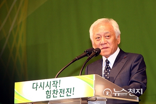 [천지일보=명승일 기자] 4일 오후 열린 민주당 5.4 전당대회에서 당 대표로 당선된 김한길 의원이 당선 소감을 밝히고 있다. 김 의원은 이날 열린 경선에서 61.72%의 득표율로 이용섭 후보를 누르고 당선됐다.