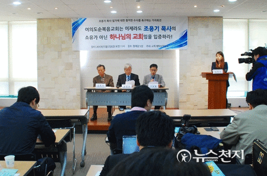 [천지일보=강수경 기자] 조용기 목사 부자를 고소해 지난 3월 교회로부터 제명‧정직처분 등을 받은 여의도순복음교회 장로들이 조 목사를 지적하고 나섰다. 조 목사 일가가 교회 재정을 사유화하는 비리를 저지르고도 회개를 하지 않는다는 이유에서다.