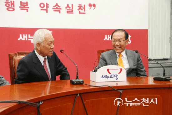 [천지일보=유영선 기자] 민주당 김한길 신임 대표가 6일 오전 서울 여의도 국회에서 새누리당 황우여 대표를 예방해 대화를 하고 있다.