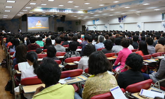 저녁 7시 이만희 총회장이 직접 ‘두 가지 씨와 추수’를 주제로 강연했다. 이 총회장은 “천국비밀이 비유로 감추어졌지만 때가 되면 밝히 이를 때가 있다. 마 13장에 말씀의 씨를 뿌린 밭은 예수교회며, 마지막 때가 되면 여기서 예수님과 천사가 함께 알곡 성도를 추수하는 일이 있다”고 말씀을 전했다.