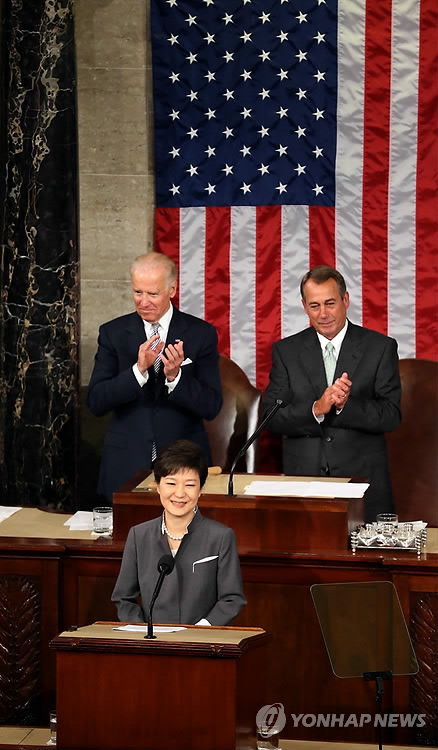 미국을 방문 중인 박근혜 대통령은 이날 미국 의회 상·하원 합동회의에서 연설했다. 미 의회 상하원 합동연설은 통상 국빈 방문인 경우 외국 정상 등에게 주어지는 의전 절차다.