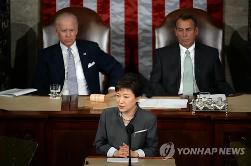 미국을 방문 중인 박근혜 대통령은 이날 미국 의회 상·하원 합동회의에서 연설을 통해 “저는 오랫동안 한미동맹의 궁극적인 목표는 전 인류의 행복에 기여하는 데 있어야 한다고 믿어왔다”고 밝혔다.