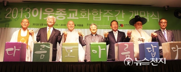 [천지일보=이솜 기자] 한국종교인평화회의(KCRP)는 9일 서울 세종호텔에서 기념 심포지엄을 시작으로 ‘2013 이웃종교화합주간 행사’를 개최했다. 이후 개막식이 이어 진행됐다.