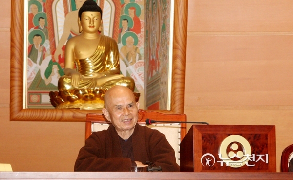 [천지일보=박준성 기자] 세계적 평화운동가이자 명상지도자인 틱낫한스님이 한반도 평화를 위해선 상대의 말에 귀를 기울이는 경청과 진정성 있는 자애의 마음을 일깨워야 한다고 주문했다.
