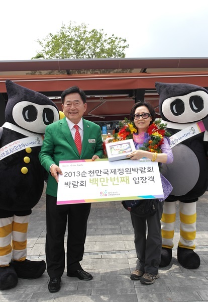 [천지일보=김미정 기자] 2013순천만국제정원박람회장에 홍경진(65) 씨가 들어서면서 입장객 100만 명을 돌파했다.