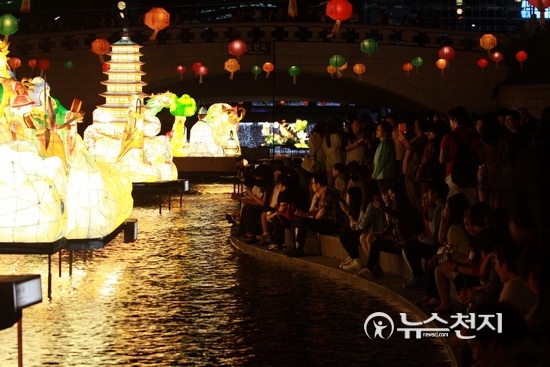 [천지일보=유용주 객원기자] 10일부터 석가탄신일인 17일까지 서울 중구 청계천 등지에서 연등회가 펼쳐지는 가운데, 시민들이 연등을 보며 휴식을 즐기고 있다.