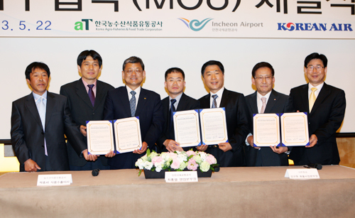 [천지일보=정인선 기자] 한국농수산식품유통공사(aT)가 우리 농수산식품의 장거리 수출지원을 위해 대한항공, 인천공항공사와 손을 잡았다.