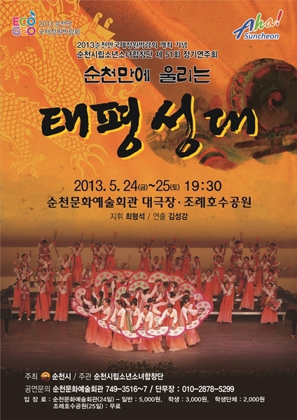[천지일보=김미정 기자] 순천시는 오는 24일부터 25일까지 문화예술회관과 조례호수공원에서 제51회 순천시립소년소녀합창단 정기연주회를 국악극 ‘순천만에 울리는 태평성대’라는 부제로 개최한다.