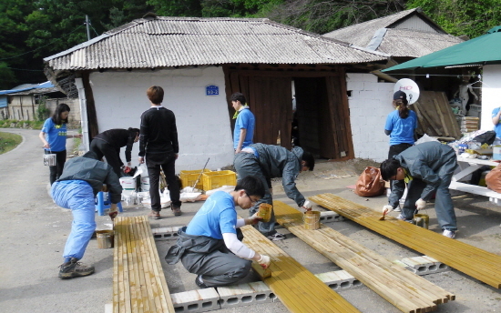 삼성물산(대표이사 부회장 정연주)은 지난 20일부터 천안시 목천읍 서흥 2리에서 직원 200여 명이 ‘사랑의 집 고치기’ 봉사활동을 진행 중이다. 삼성물산 직원들은 노후 된 농가 주택 개보수 작업과 마을 벽화그리기를 하며 마을 환경 개선 작업을 하고 있다.