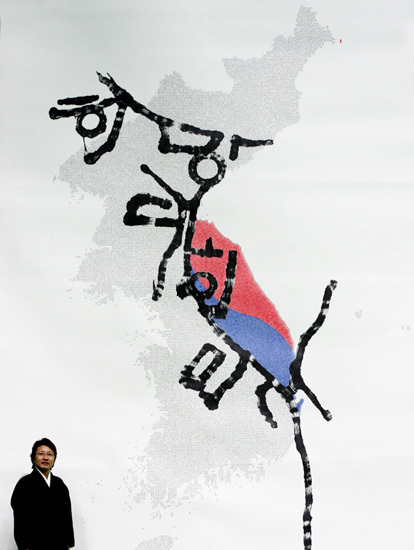 20여 년간 한글로 세계평화지도를 그려온 한 작가는 G20정상회의를 비롯해, 여수엑스포 등 국가 주요행사의 초대작가로 활동했다.