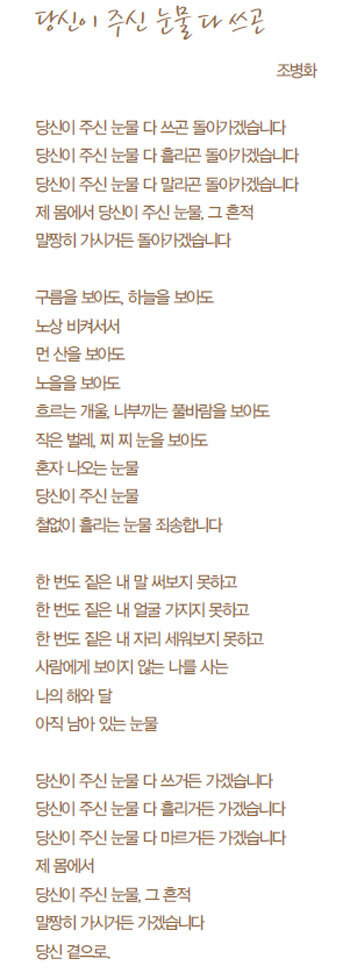 그 유래가 어찌 되었든, 인간의 유한성과 예술의 무한성을 대조적으로 잘 설명해주는 말이다. 우리에게 허락된 시간이 있는 한 ‘봄처럼’ 부지런하게 ‘죽으면 썩을 살’을 아끼지 말고 자신을 자신답게 하는 ‘꿈이라는 꽃봉오리’가 화려한 꽃을 피울 수 있도록 노력해야 한다는 것이 꽃피는 계절을 맞는 우리에게 편운(片雲)의 시가 주는 울림이자 가르침이다.