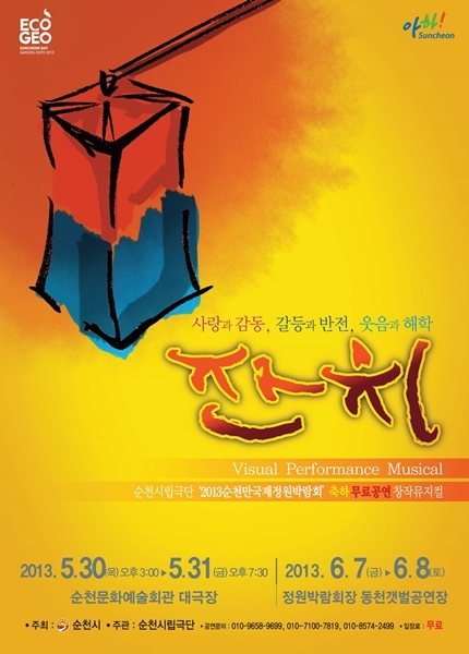[천지일보=김미정 기자] 순천시립극단은 오는 30일부터 31일까지 2일간 순천문화예술회관에서 2013순천만국제정원박람회 성공 염원을 위한 창작 뮤지컬 ‘잔치’를 공연한다.