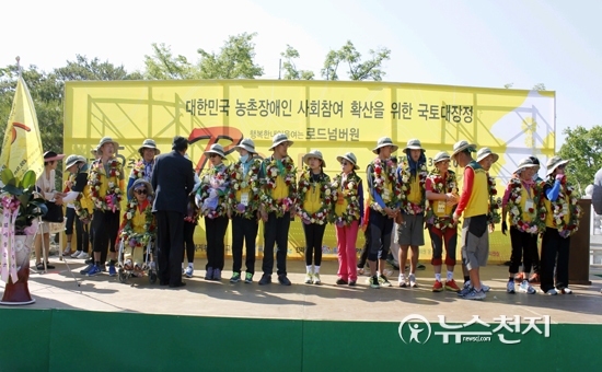 장애인과 비장애인, 자원봉사자와 후원자 등 총 26명이 1대1로 조를 이뤄 출발한 대원들은 총 499㎞를 걸었다.