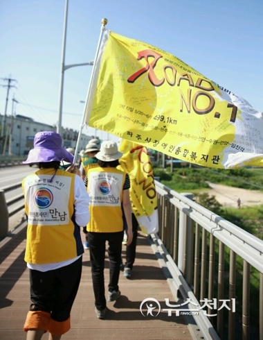 [천지일보=김현진 기자] 파주시장애인종합복지관(관장 유석영)이 개관 15주년을 기념해 목포 노적봉에서 출발해 임진각까지 걷는 ‘행복한 내일을 여는 ROAD NO.1’ 국토대장정이 1일 임진각 도착을 끝으로 모든 여정을 마쳤다.