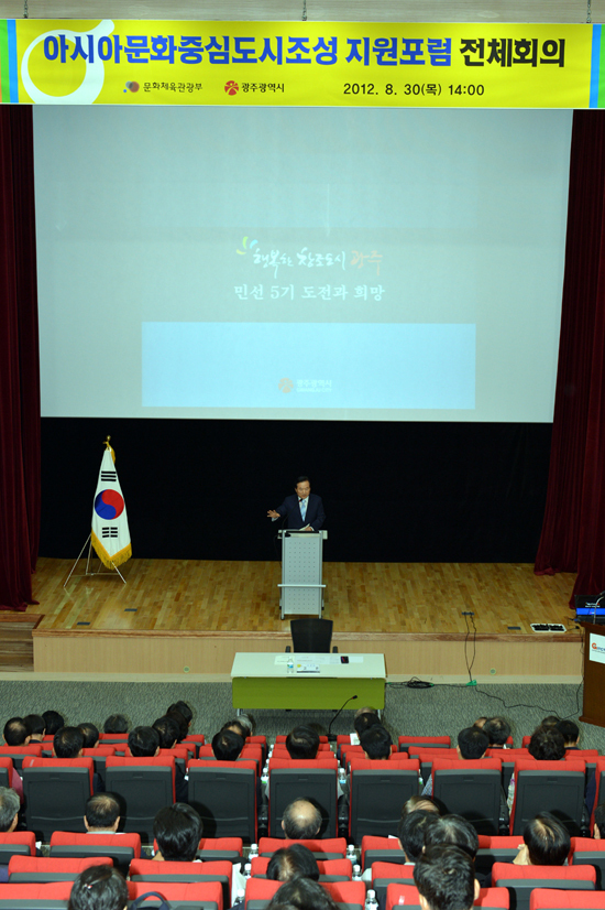 광주시(시장 강운태)는 아시아문화중심도시조성사업의 성공적 추진을 위한 민‧관 협의체인 (사)아시아문화중심도시조성 지원포럼(지원포럼) 출범을 알리는 창립총회를 7일 광주 CGI센터에서 개최했다.