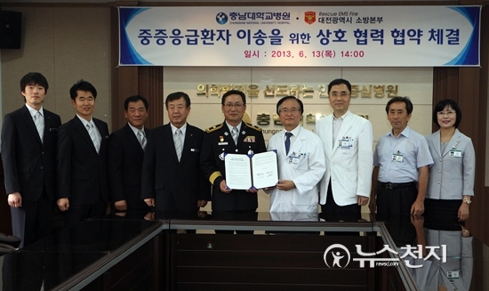 [천지일보 대전=박진환 기자] 대전시소방본부(소방본부장 김성연)가 중증응급환자 이송 협력을 위해 충남대학교병원(원장 송시헌)과 업무협약을 체결했다고 밝혔다.