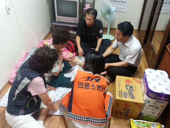 금번 봉사활동에는 종로소방서 구조구급팀장 오용규와 홍장의, 이범진, 박무선 구급대원과 도경자, 김명숙, 이은경 등 지역 방재역군인 의용소방대원이 함께 참여했다.